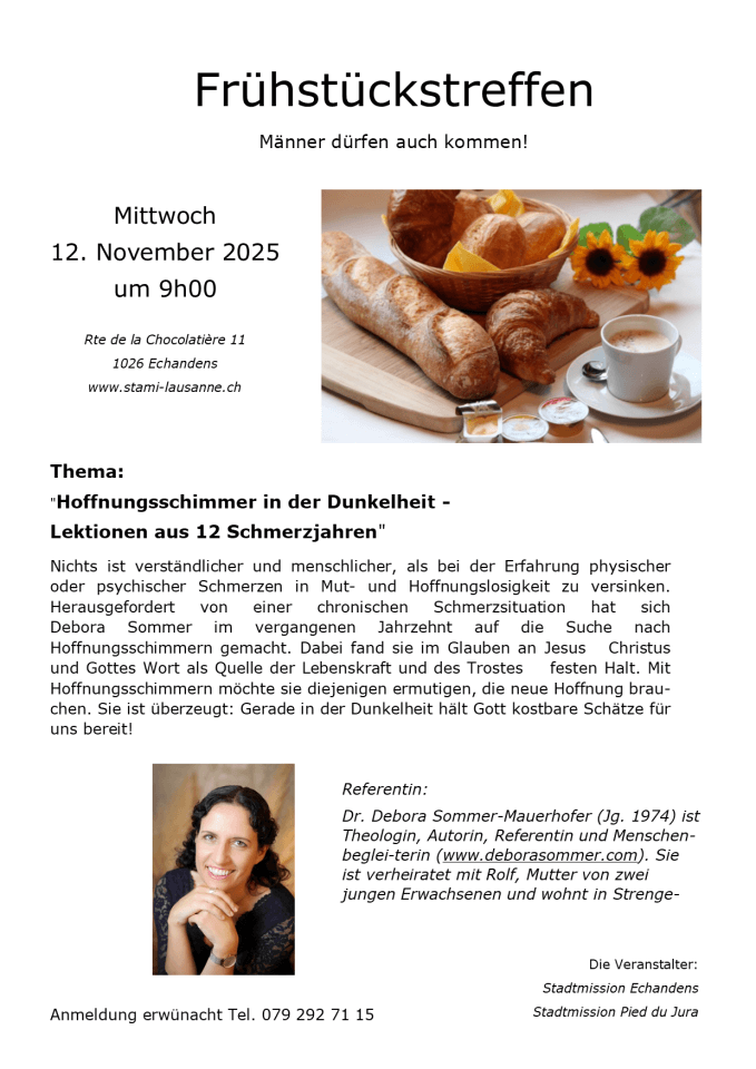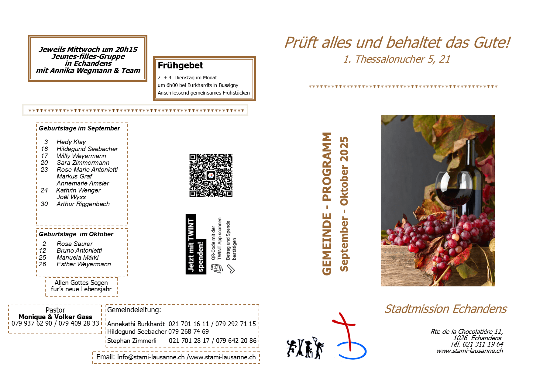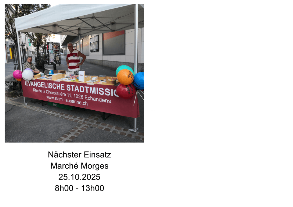 Die Stadtmission befindet sich in Echandens, in der Nähe von Lausanne, nicht weit von der Autobahnausfahrt "Bussigny" entfernt. Unsere Gemeinde besteht schon seit über 100 Jahren. Unsere Gottesdienste sind auf Deutsch und werden nach Bedarf auf Französisch übersetzt.